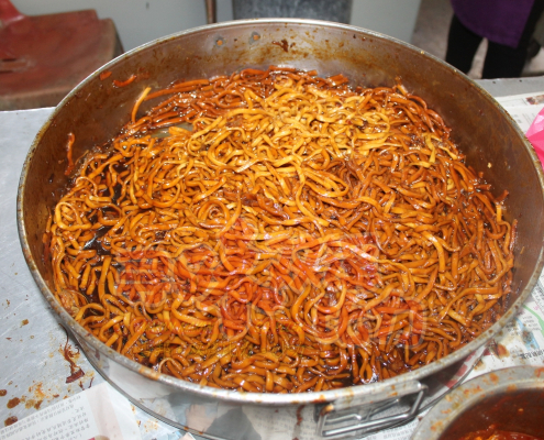 原来,中国福州面食就有一道福州拌面。拌,是拌和、搅和的意思,即是粤语里所谓的“捞”,换言之拌面也即是“捞面”。拌面、板面,发音接近,做法亦相似,拌面是用面粉和鸡蛋制成面条,煮熟后捞出沥干水分,另用稀释的花生酱和酱油拌面,并撒上葱花。