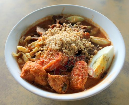 卖罗惹面的都兼卖咖哩叻沙。在一流罗惹面档,咖哩叻沙带咸,罗惹面则是半甜咸。两者卖价一样,小盘RM…
