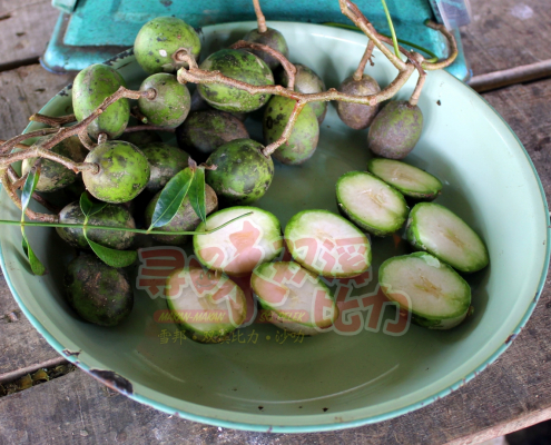 昔日藏在山间无人问,如今身价飞涨万家尝。说的是沙梨果,双溪比力地区,不少食肆有卖沙梨果汁,加入酸梅粉的沙梨果汁更美味,是时下流行的一种健康果汁。